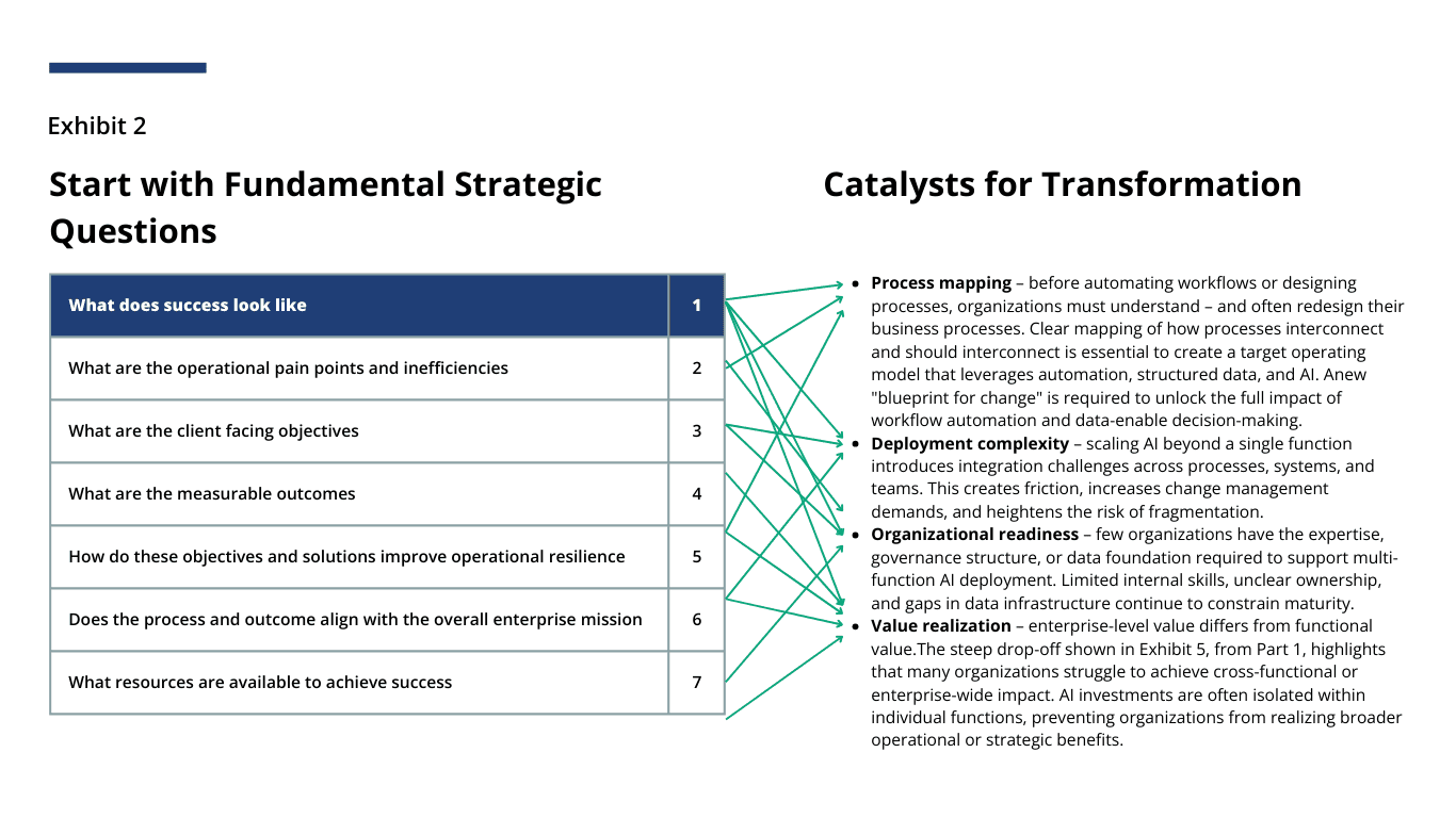 This part of the series explores how to help clients bridge that divide, developing AI strategies grounded in measurable outcomes, operational resilience, and alignment with the enterprise’s overall mission.