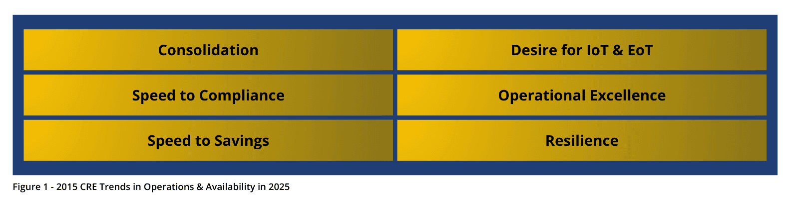 A decade ago, in 2015, the prevailing global CRE trends in operations were focused on addressing the key areas in Efficiency, Growth, and Innovation. See Figure 1 below.